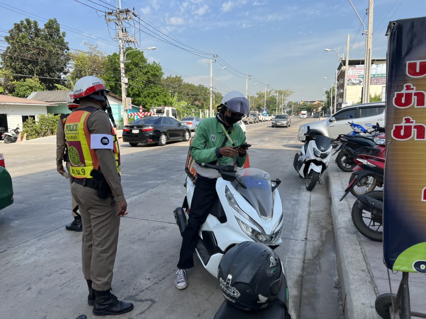 พร้อมเจ้าหน้าที่ตำรวจจราจร รวมกันตั้ง ?จุดตรวจกวดขันวินัยจราจร?