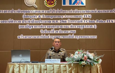 วันที่ 20 มีนาคม 2566 สำนักงาน ..โดยสำนักประเมินคุณธรรมและความโปร่งใส จัดกิจกรรม Clinic Police ITA 2023 (กองบัญชาการตำรวจนครบาล และตำรวจภูธรภาค 1) โดยมี พล...วิสนุ  ปราสาททองโอสถ จเรตำรวจแห่งชาติ เป็นประธานในพิธีเปิดกิจกรรมฯ และ นายทวิชาติ นิลกาญจน์  ผู้ช่วยเลขาธิการคณะกรรมการ ..เป็นผู้กล่าวรายงาน  โรงแรมรามาการ์เด็นส์ กรุงเทพ เขตหลักสี่ กรุงเทพมหานคร