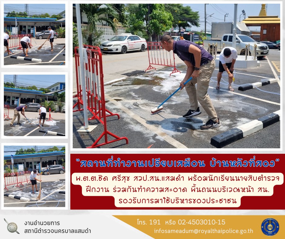 👮สถานที่ทำงานเปรียบเสมือน บ้านหลังที่สอง👮พ.ต.ต.ชิด ศรีสุข สวป.สน.แสมดำ พร้อมนักเรียนนายสิบตำรวจฝึกงาน ร่วมกันทำความสะอาด พื้นถนนบริเวณหน้า สน. รองรับการมาใช้บริการของประชาชน [...]