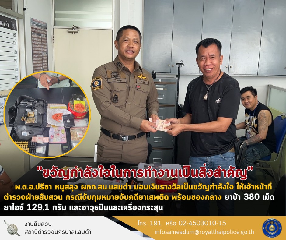 ❤️ขวัญกำลังใจในการทำงานเป็นสิ่งสำคัญ❤️ พ.ต.อ.ปรีชา หนูสลุง ผกก.สน.แสมดำ มอบเงินรางวัลเป็นขวัญกำลังใจ ให้เจ้าหน้าที่ตำรวจฝ่ายสืบสวน กรณีจับกุมหมายจับคดียาเสพติด พร้อมของกลาง ยาบ้า [...]