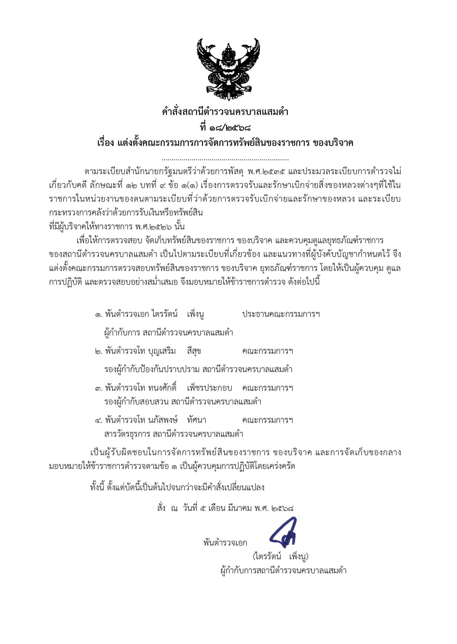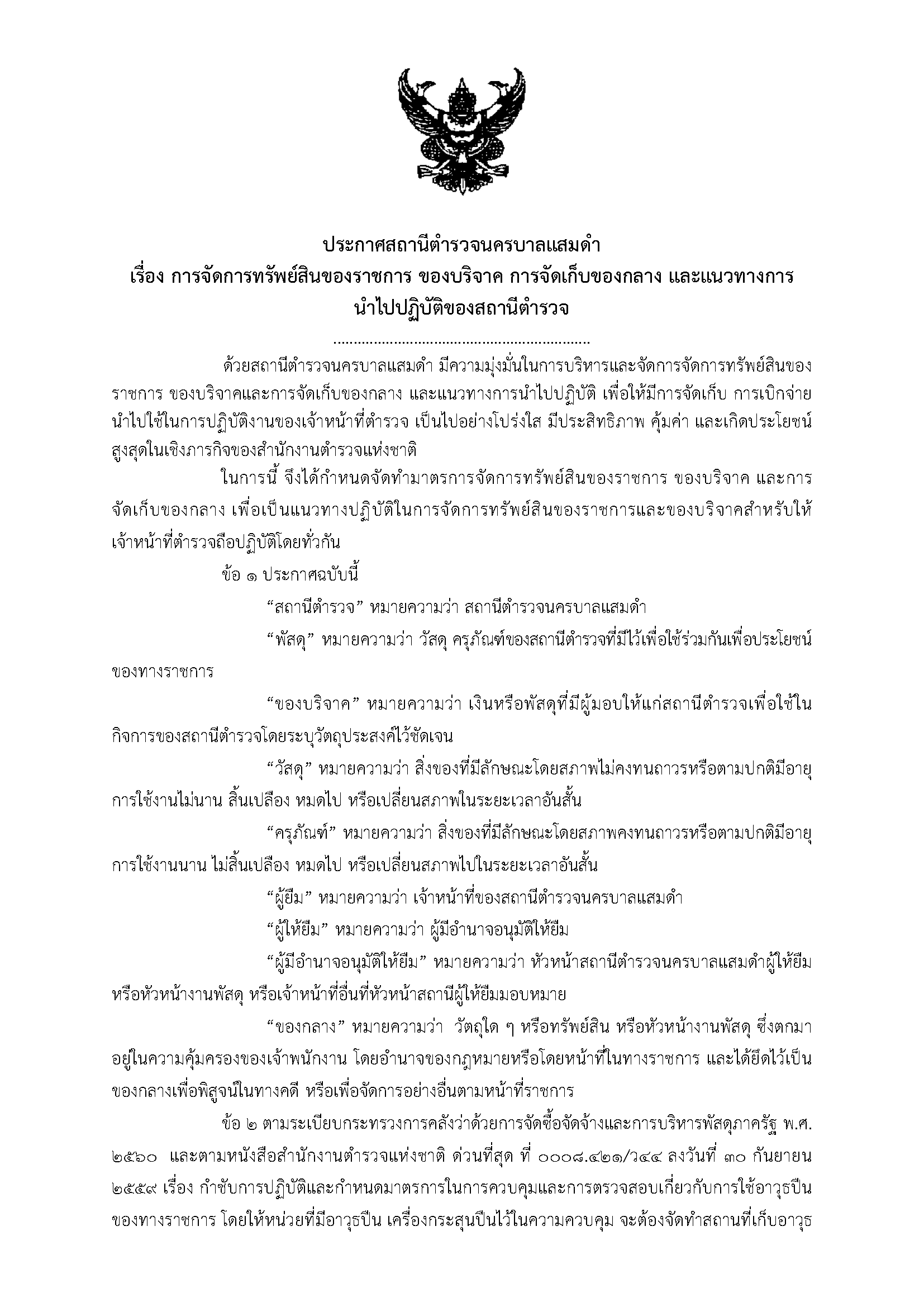 เรื่อง การจัดการทรัพย์สินของราชการ ของบริจาค การจัดเก็บของกลาง และแนวทางการนำไปปฏิบัติของสถานีตำรวจ