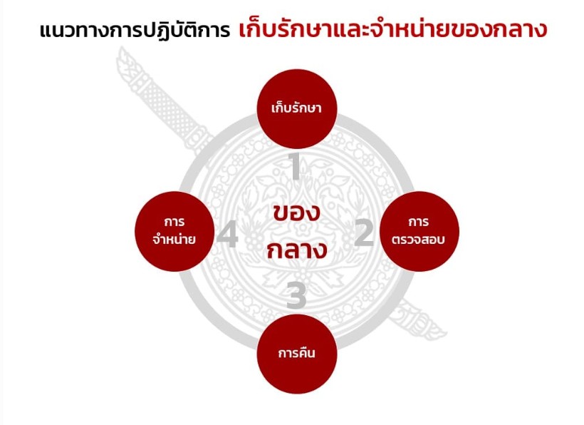 • การกำหนดแนวทางควบคุมกำกับดูแลรักษาตรวจนับ ตรวจสภาพการใช้งานทรัพย์สินของราชการ